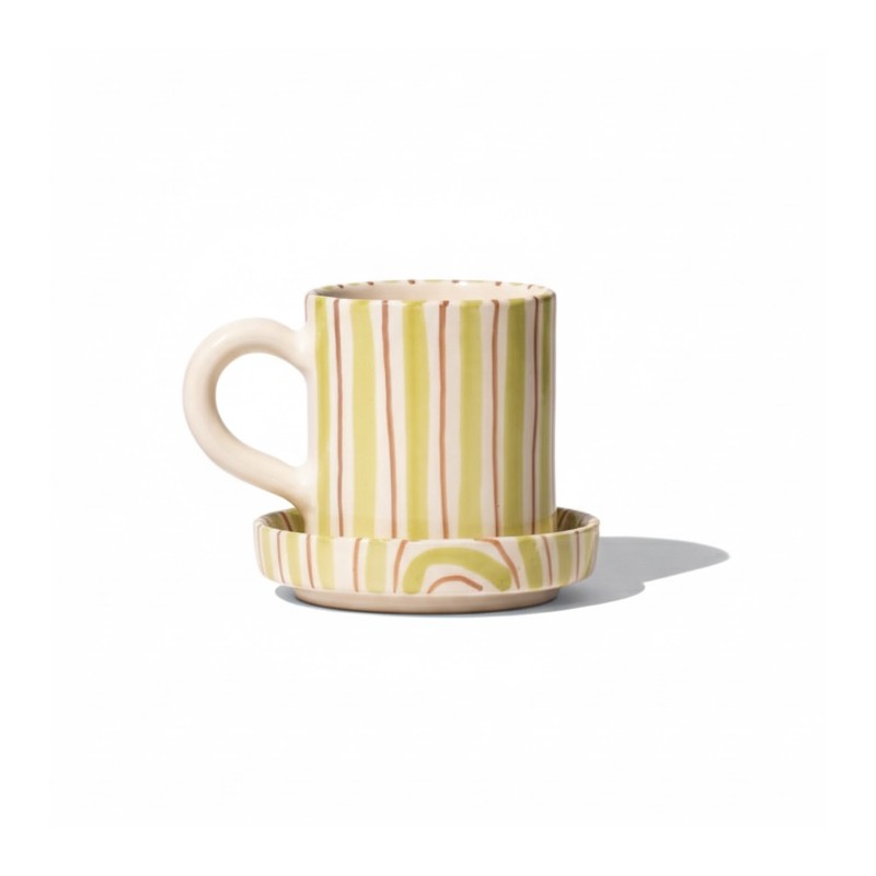 Apportez une touche de gaieté et de modernité à vos moments de dégustation avec cette superbe tasse et sa sous-tasse assortie. Fabriquées à la main par des artisans passionnés, ces pièces rayées aux couleurs pop vibrantes sont idéales pour être utilisées ensemble ou séparément, selon vos envies.